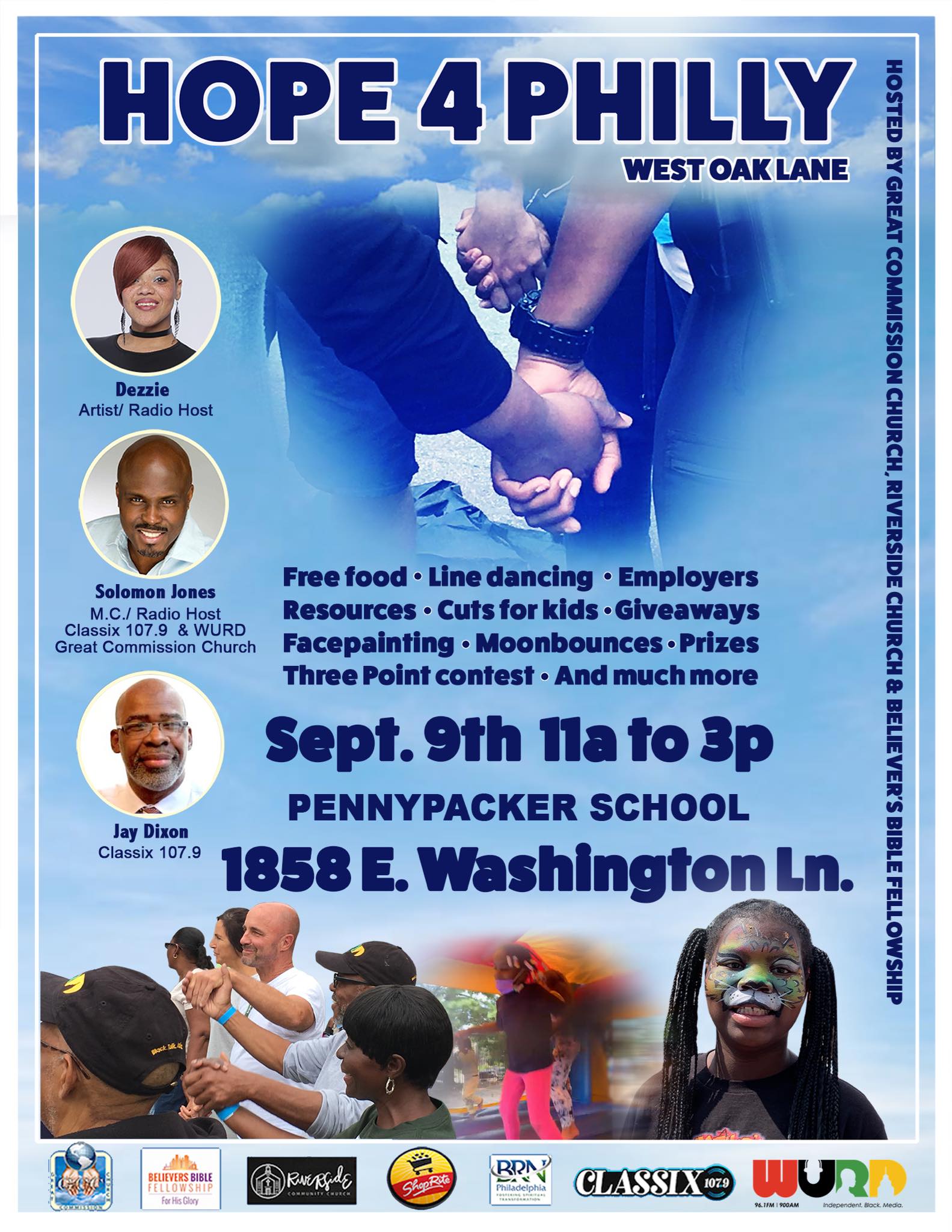 Join WURD Radio and Wake Up With WURD host, Solomon Jones, on September 9 at 11 a.m. for Hope 4 Philly at Pennypacker School, 1858 E. Washington Lane. There will be free food, fresh produce, line dancing, prayer, gospel and a whole lot more! We look forward to seeing you there.