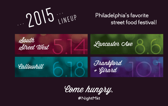 Night Market Philadelphia is the city’s premier street food festival, a roving food event spotlighting Philly’s best ethnic and regional restaurants and food trucks. Inspired by Asia’s lively outdoor markets, our events celebrate up-and-coming neighborhoods and showcase Philadelphia’s diverse food and drinks and vibrant arts and culture scene.