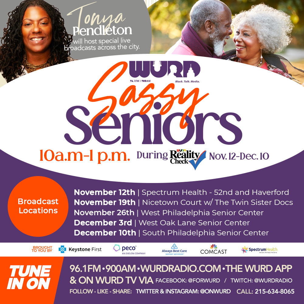 Sassy Seniors is an event series honoring our seniors who are still active. WURD Radio will spotlight community resources to ensure seniors know what services are available to them. During Reality Check, hosted by Tonya Pendleton, WURD will broadcast live from various sites across the city. WURD Radio is creating an important space for Philadelphia’s African American community to gain information and ask questions from insurance and senior service experts about the best options for their health care as they get older. Brought to you by Comcast, PECO, Keystone First, Spectrum Health and Always Best Care.
