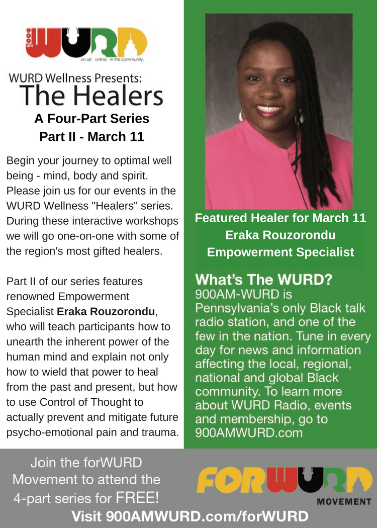 In this presentation, renowned Empowerment Specialist Eraka Rouzorondu will teach participants to unearth the inherent power of the human mind and explain not only how to wield that power to heal from the past and present, but how to use Control of Thought to actually prevent and mitigate future psycho-emotional pain and trauma. Those who attend will find what has never been lost and be “reMinded” of what has been forgotten.