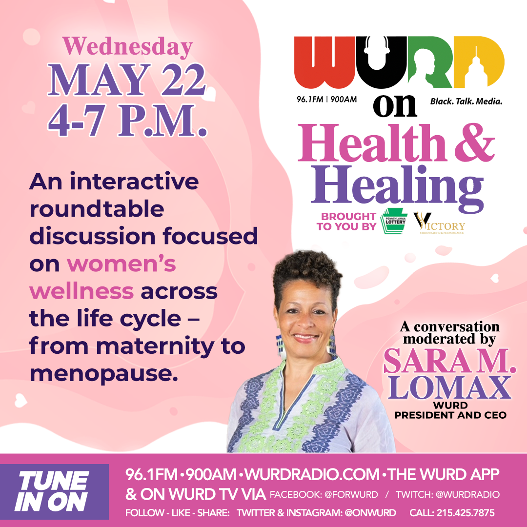 On May 22nd, in celebration of Mother’s Day, WURD President and CEO, Sara M. Lomax will host a special 3-hour, interactive roundtable discussion focused on women’s wellness across the life cycle – from maternity to menopause. Topics include: